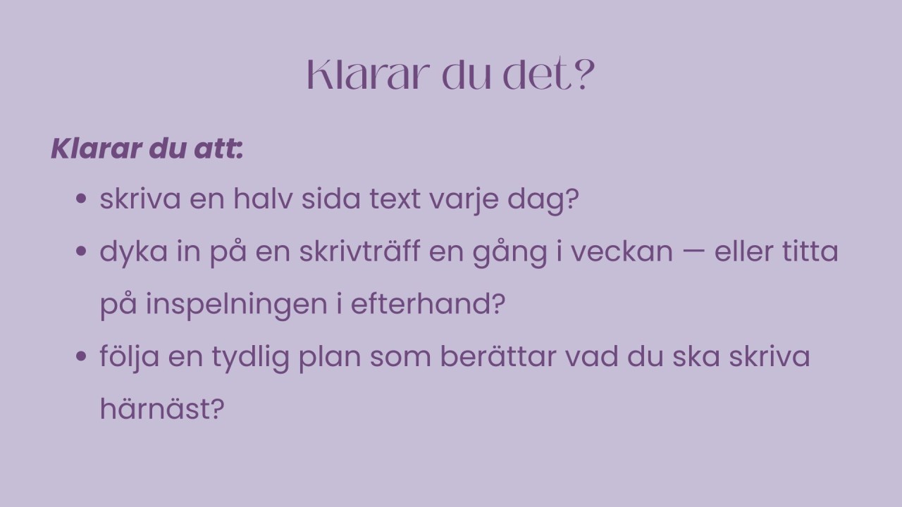 På 15 minuter hjälper jag dig förstå hur du kan skriva för att hinna och även hur lång tid du behöver räkna med.